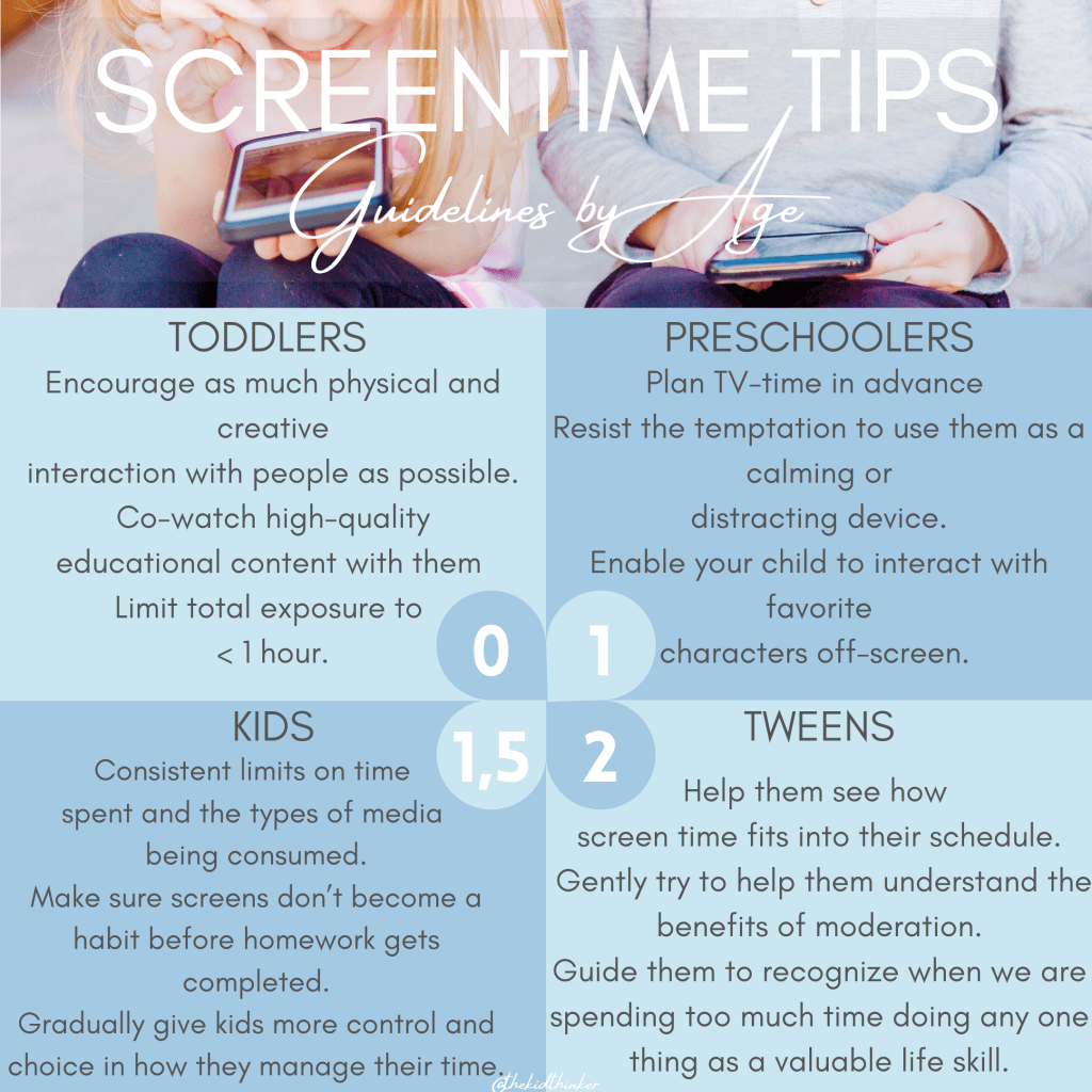 General guidelines for screen time (as recommended by the World Health Organization and the American Academy of Pediatrics: